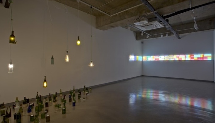 이작품은 이윤철 작가의 bottle Light. 깨진 병을 이용한 작품으로 감성적인 분위기가 물씬 풍기는 작품입니다. 작가는 병들 중에 실생활에서 유일하게 재활용하지 못하는 와인병을 이용하여 그 표면에 무늬를 새기거나 샌딩을 한 뒤 불투명하게 만드는 등 다양한 느낌의 아름다운 전등을 만들었네요 빈병을 예술작품으로 승화시키는 작가의 감성과 센스~ 실제로 봤을때 더욱 예뻤답니다.